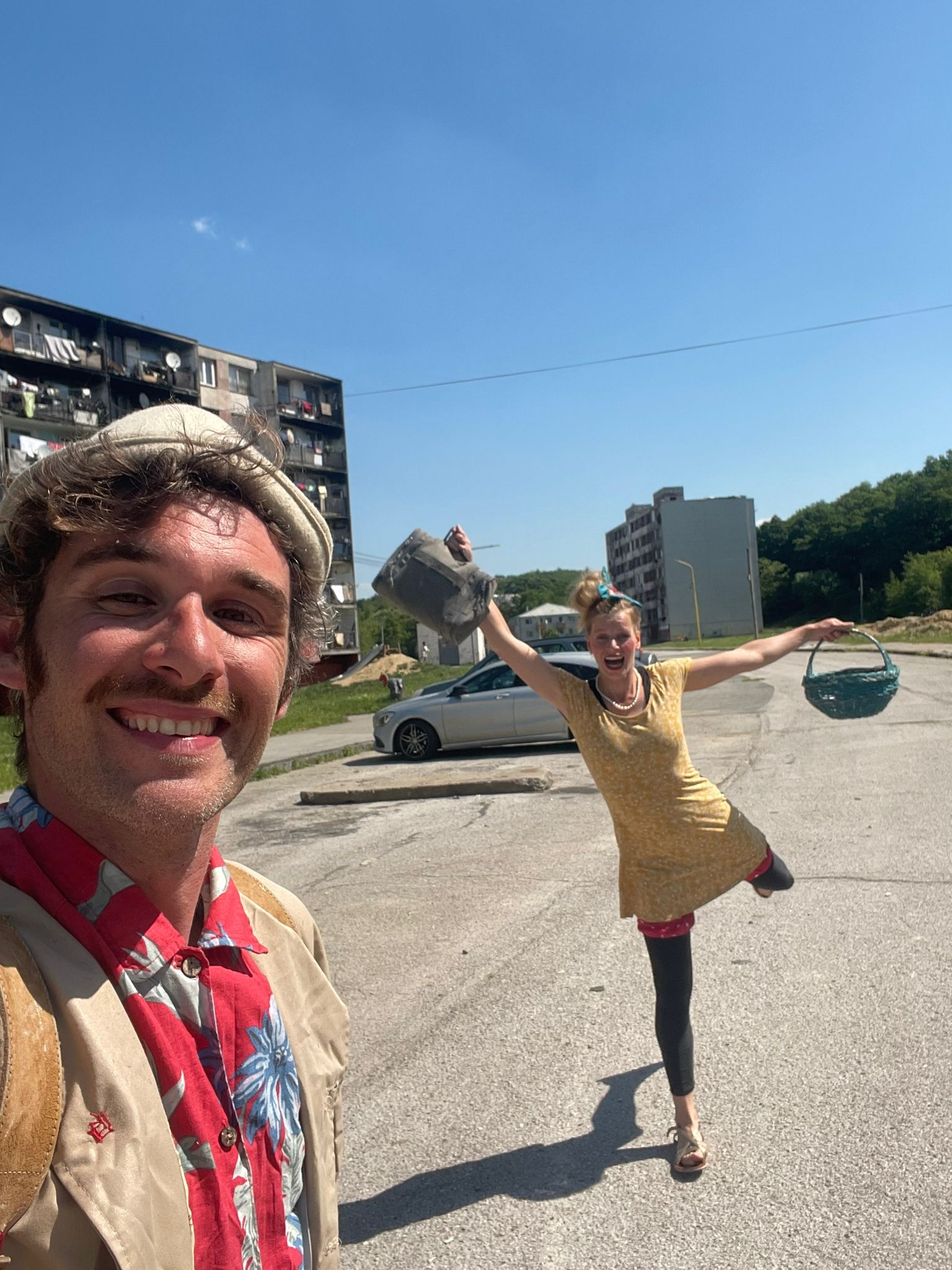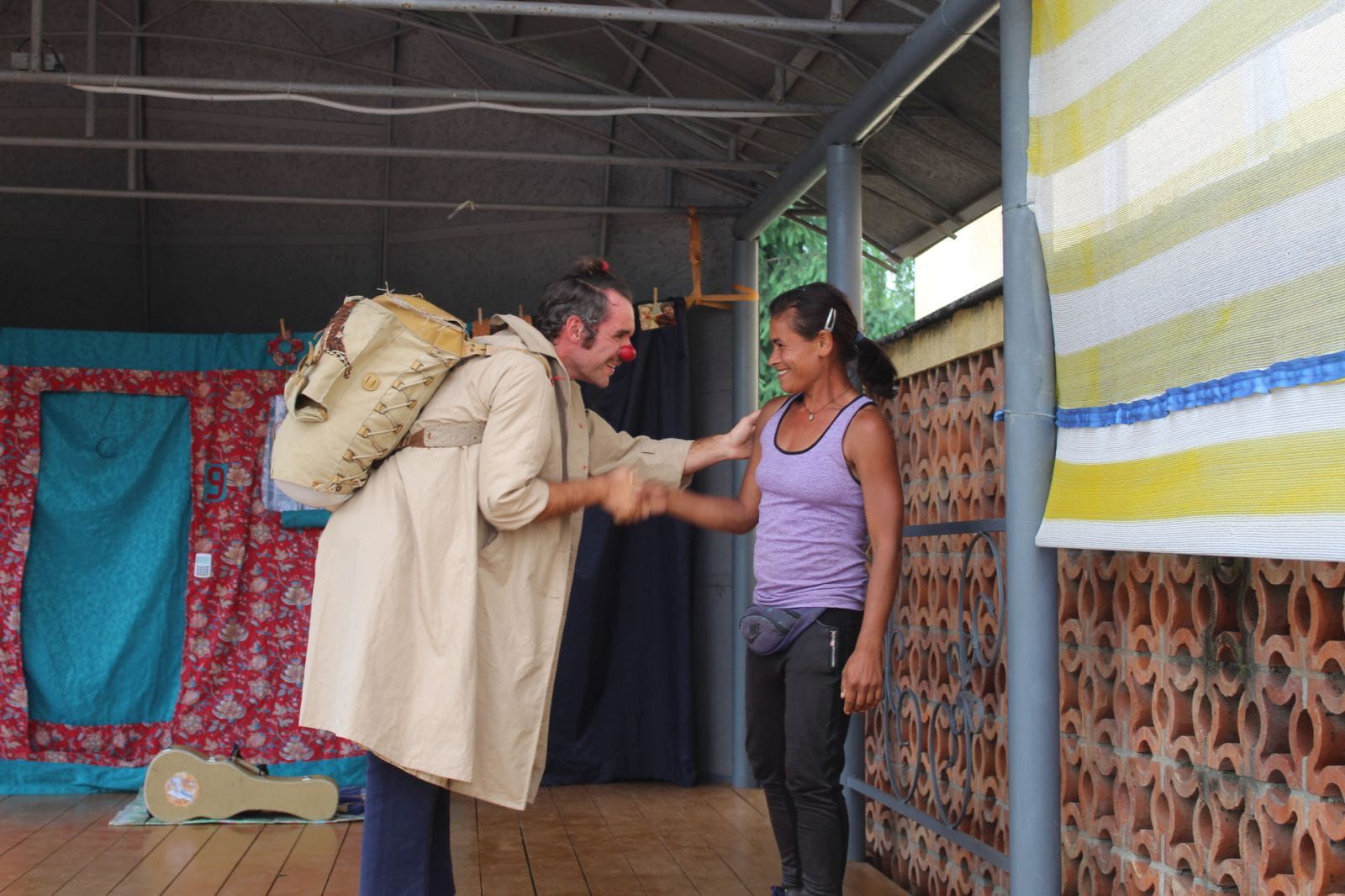 Pour ce projet, Clowns sans Frontières a collaboré avec Nez du Monde, couple de clowns de l’association, qui ont décidé de voyager à vélo à travers le monde, avec leur enfant et leur spectacle « Stuckonyou ».